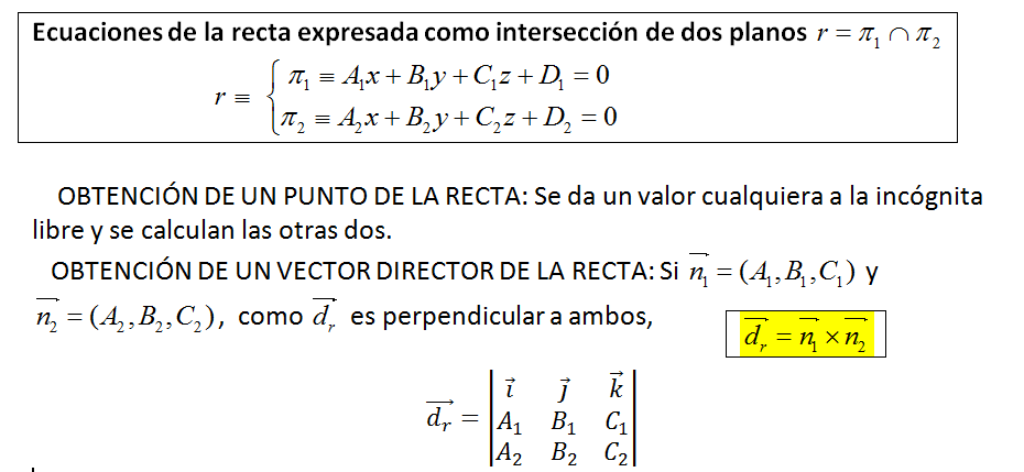 Luego, para plantear las ecuaciones cartesianas paramétricas de la recta r, tomamos uno de sus puntos y su vector director u (observa que u es un vector cuyas componentes hemos calculado a partir de los puntos P y Q que pertenecen a la recta), por lo tanto quedan: