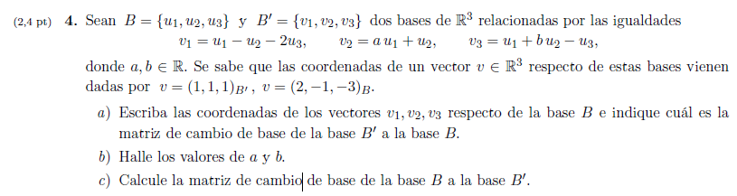 Te sugiero estos vídeos, todos los de esta lección.. ALGEBRA Matriz de Cambio de Base 01 A partir de ahí, me encantaría ayudarte, pero no respondo dudas universitarias que no tengan que ver específicamente con los videos que ya he grabado como excepcion. Lo siento de corazón… Espero lo entiendas