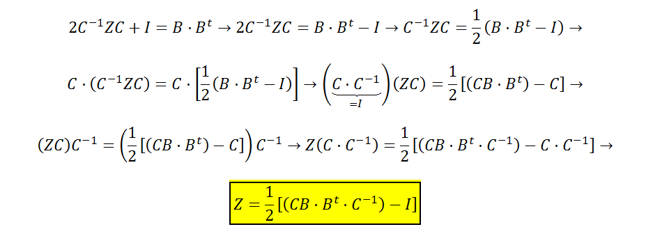Buenas tardes, alguien me podría ayudar a despejar la Z de esta ecuación? 2.C-1Z.C+I3=B.Bt