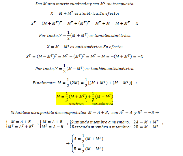 simétrica y de una matriz antisimétrica, y que, además, la descomposición es única. Gracias de antemano.