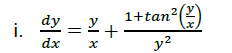 Planteamos la sustitución: y/x = t, de donde tenemos: y = xt, y también teneoms: dy/dx = t + xdt/dx, sustituimos y queda: