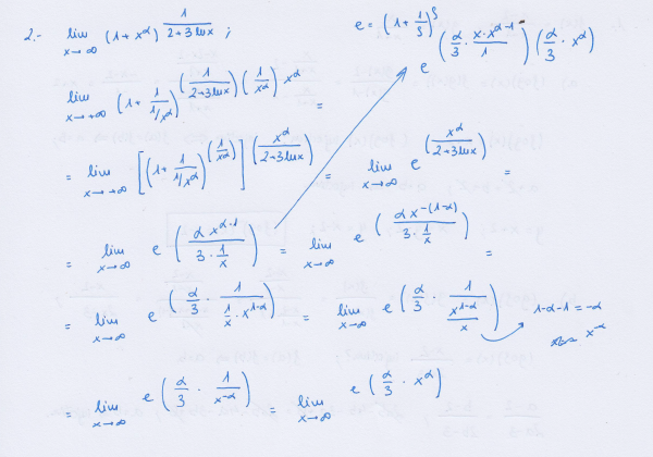 Muy buenas tardes a todos, me gustaría que me ayudasen en una duda que tengo. He tratado de realizar éste límite por la forma de (1 + 1/f)^f = e, pero no me sale, en cambio, si lo hago por L'Höpital si que me da el resultado correcto, que es α/3.