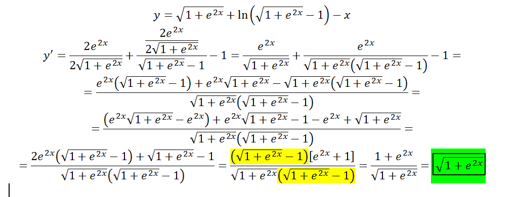 la derivada de esta función puedo resolverla por propiedad pero no se que hacer con el segundo miembro que queda "-ln[(√1+ε2x)-1]"