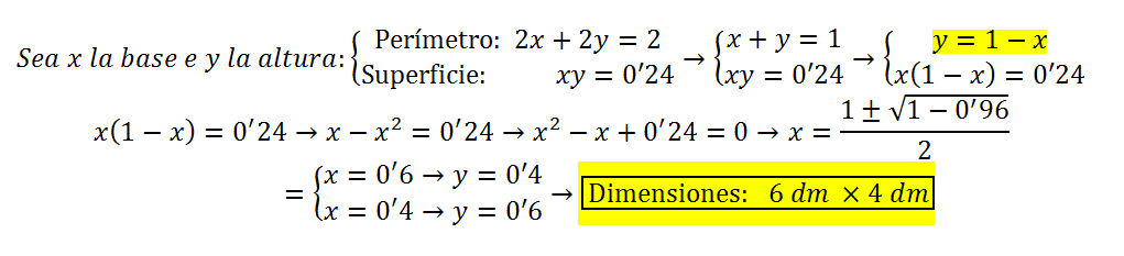 Laura quiere hacer el marco de un cuadro con un listón de madera de 2 m sin que le sobre ni le falte nada. El cuadro tiene 24 dm2 de superficie. ¿Cuál es la longitud de los trozos que debe hacer?