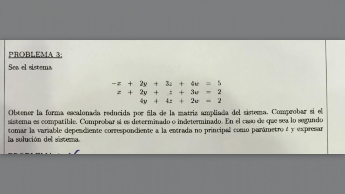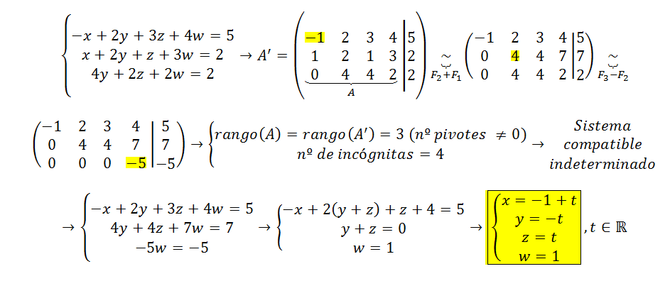 Hola Leonardo, te dejo la resolución del sistema, que es un SI, un sistema incompatible, y luego un vídeo para la resolución por gauss