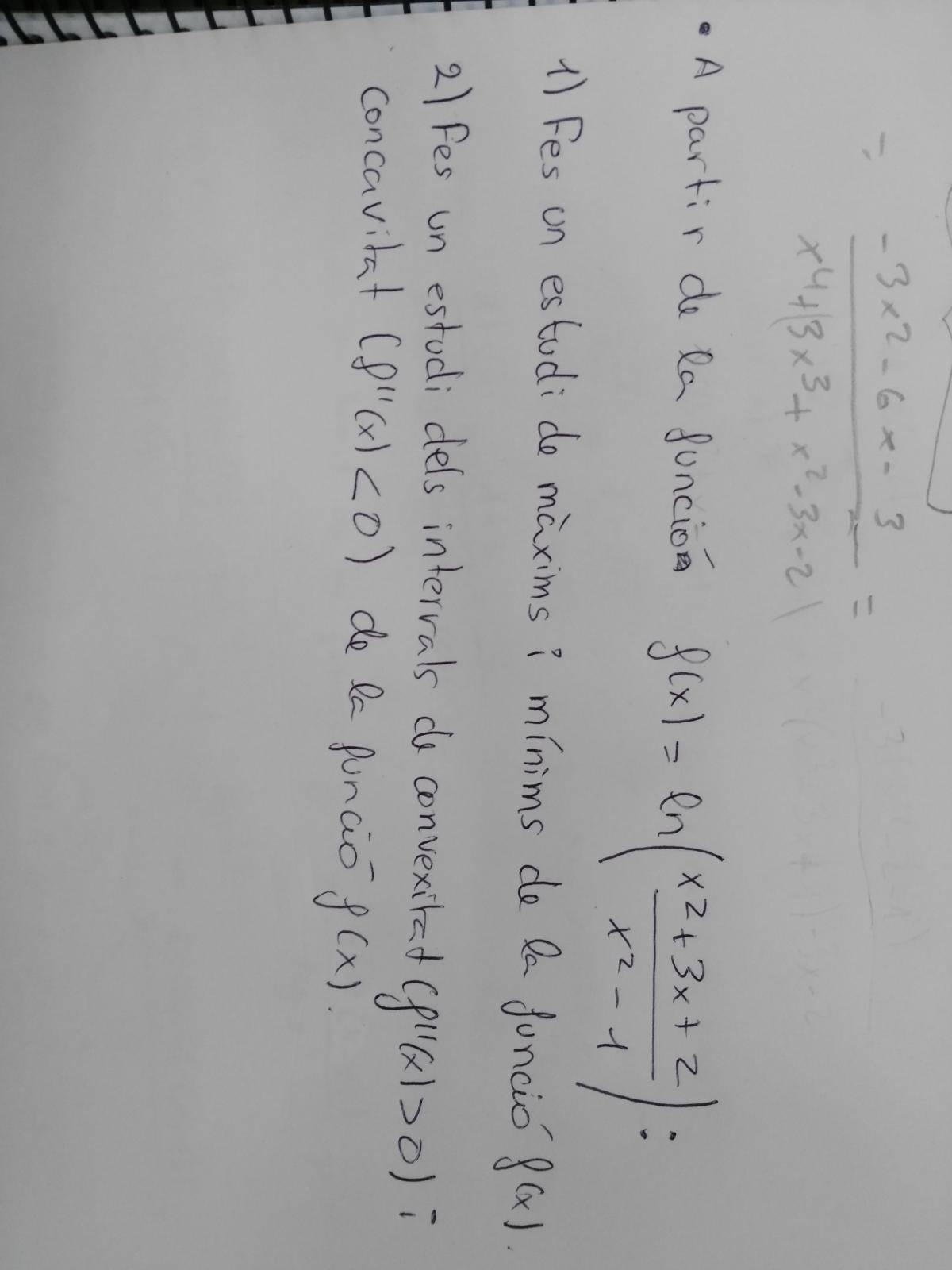 f(x) = ln|x+2| - ln|x-1|, luego, su derivada primera queda: