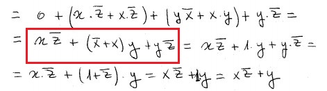 La segunda, es: si yo tengo y'.(x' + x ) + z ----- x' y x se anulan, pero no sé si y' (y negado) por 0 es y' o 0, ¿Es cierto y' . 0= 0?