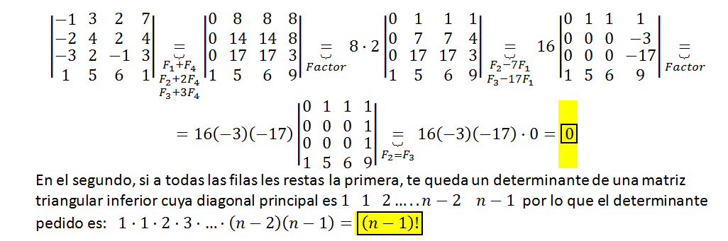 1) Si D es distinto de cero, a lo que corresponde: a distinto de -1 y a distinto de 1, el rango de la matriz será 3.