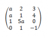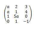 2) Si a = -1 (que corresponde a que el rango no es 3), reemplazas en la matriz original y puedes seleccionar una submatriz (por ejemplo, con los dos primeros elementos de las dos últimas filas), calculas su determinante (E) y queda: