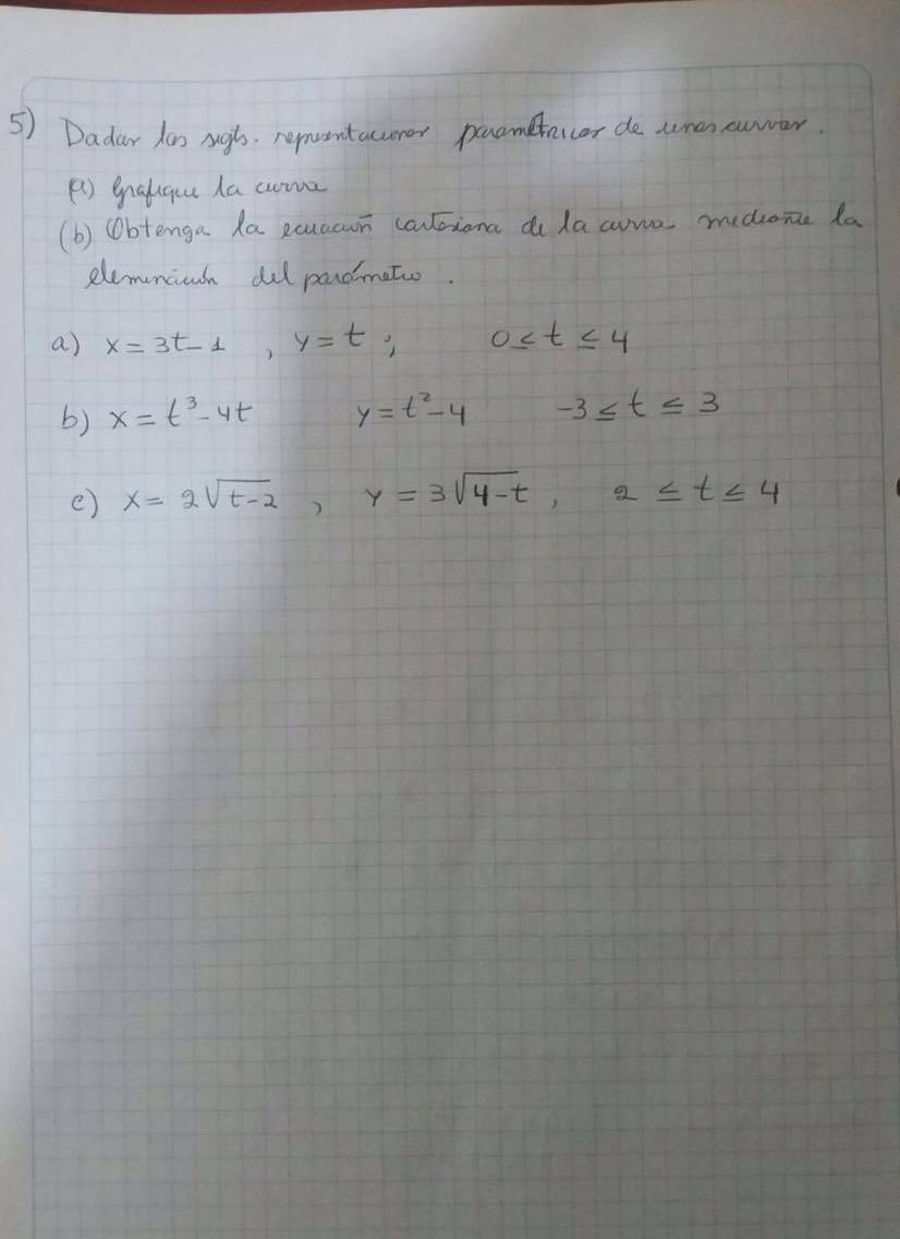 x = t(t^2 - 4), y luego susituir en ella la expresion para y, y por el momento queda: