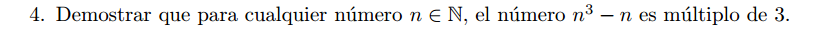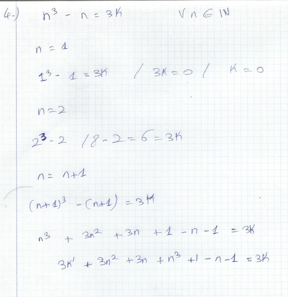 Tesis Inductiva, P(h+1): (h+1)^3 - (h+1) = 3*t2, con t2 perteneciente a N, que tenemos que probar que es Verdadera.