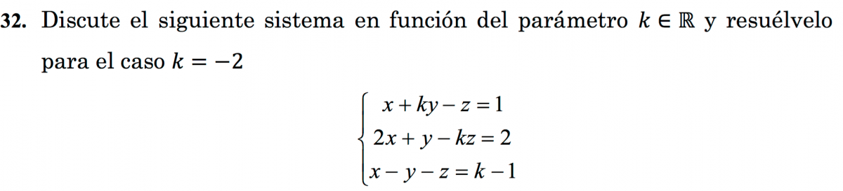 Para k=2, Rango=2 que es menor al numero de incognitas (3), por lo que el sistema tiene infinitas soluciones.