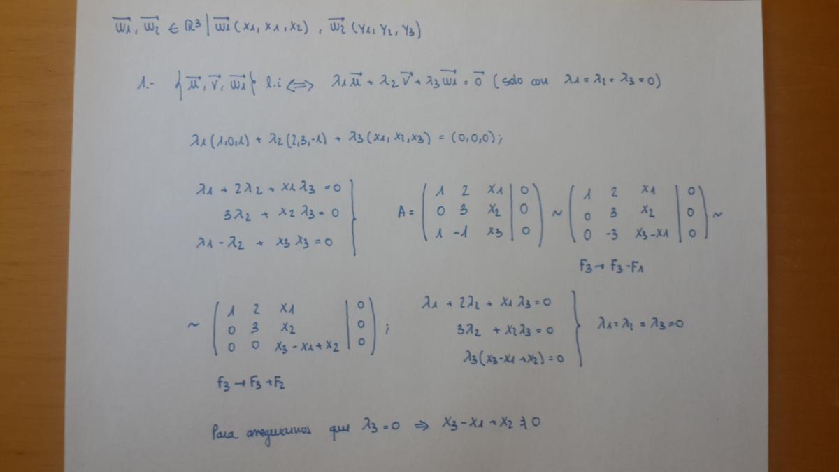 Buenos días, estoy intentando realizar un ejercicio de vectores en R3, y no se muy bien como terminar el ejercicio, ya que me atasco en un punto. El ejercicio dice así: