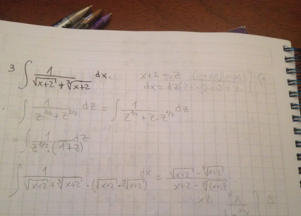 Observa la segunda raíz del denominador en tu planteo, porque luego de sustituir queda igual a z^(1/3).