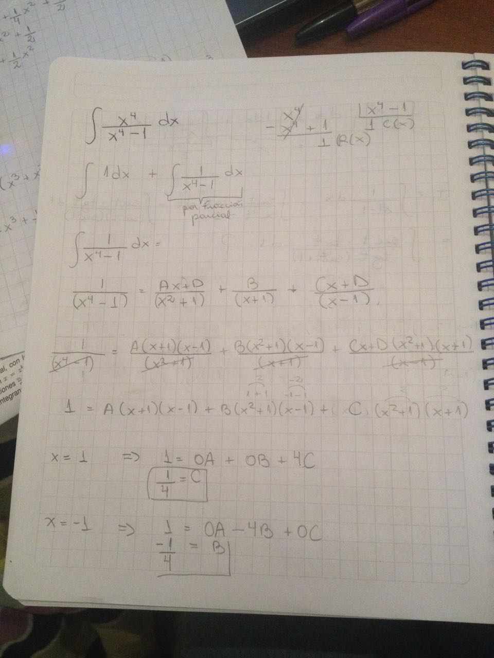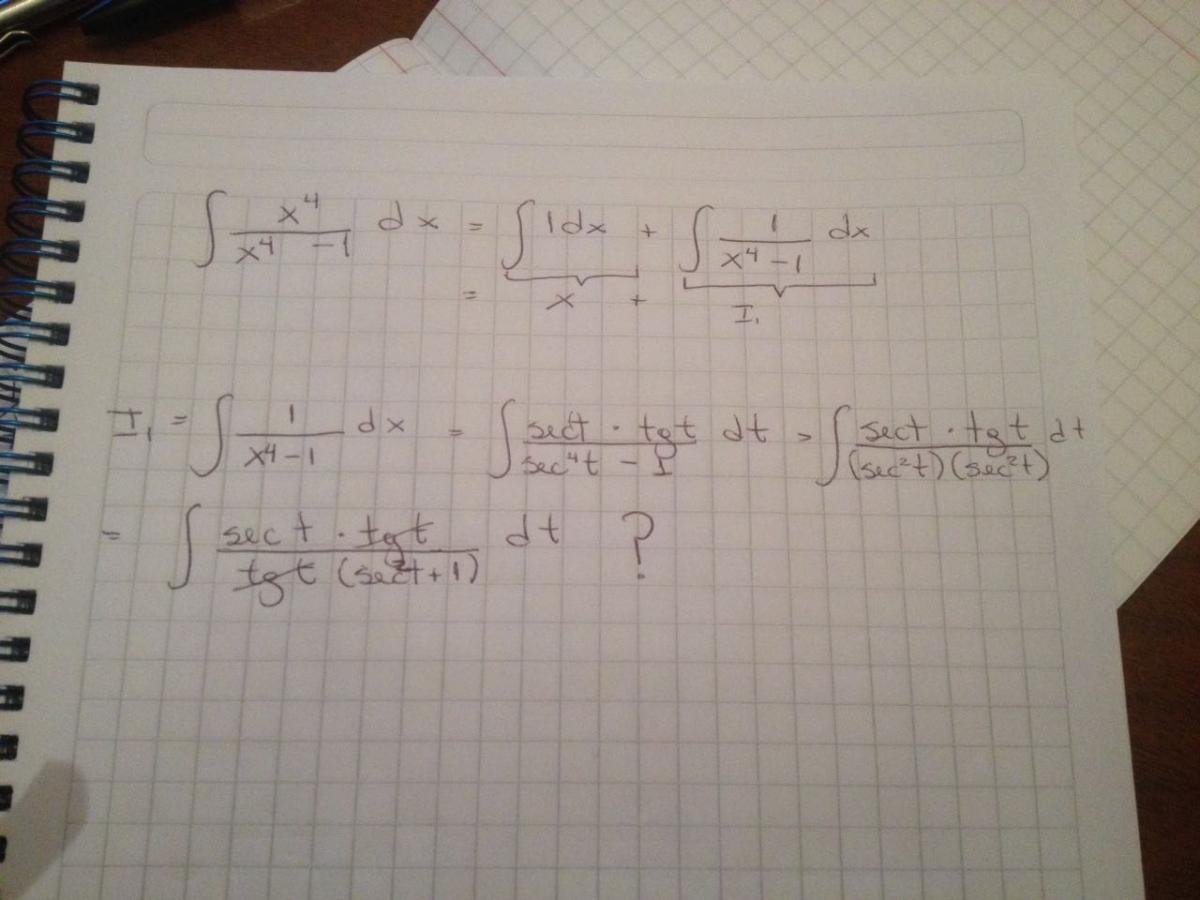 I = Integral ( 6w^5 /(w^3 + w^2) )*dw, que puedes resolver aplicando el método de las fracciones parciales (observa que en este caso debes efectuar la división como primer paso).