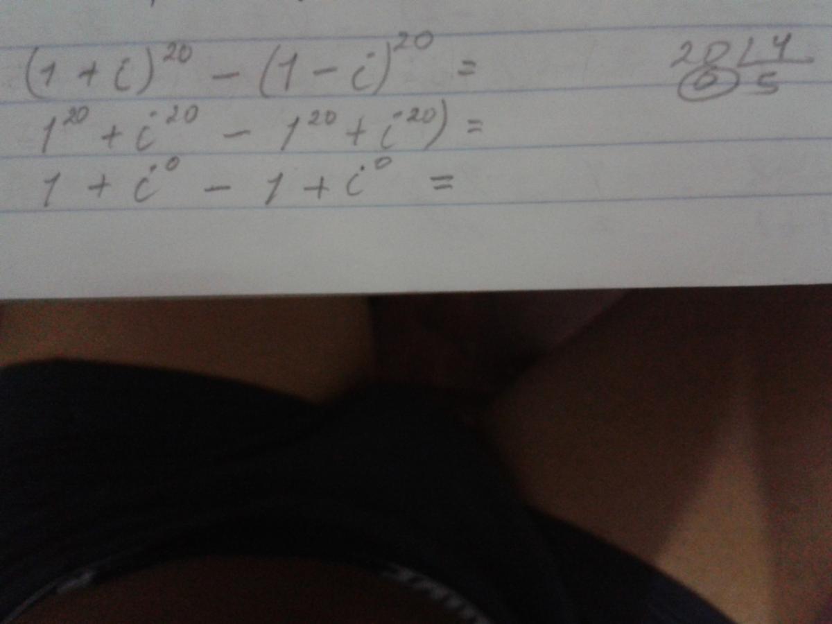 z1^20 = 1024*(cos180° + i*sen180°) = reemplazamos valores = 1024*(-1 + 0i) = -1024.