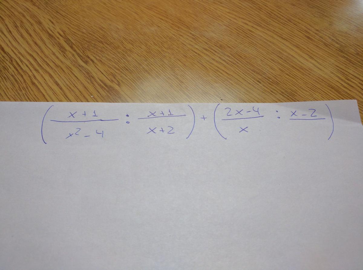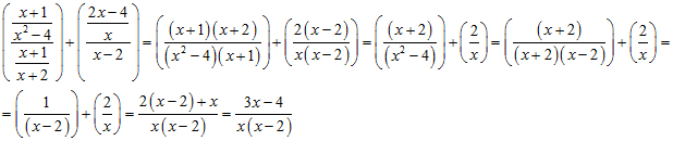 PROBLEMA: [(x+1/x^2-4):(x+1/x+2)] + [(2x-4/x):(x-2)]