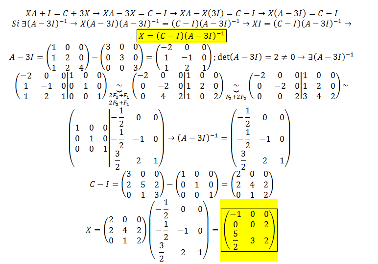 Buenas noches, quería que me ayudasen a despejar la X en esta ecuación matricial, ya que hay una AX y un 3X y no sé si se puede operar con ellos, ya que la X está en posiciones distintas. Gracias.![]()
