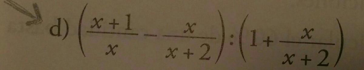 A = (x+1)/x - x/(x+2) = extraemos denominador común = ( (x+1)(x+2) - x^2 ) / ( x(x+2) ) = resolvemos = (3x+2)/( x(x+2) )