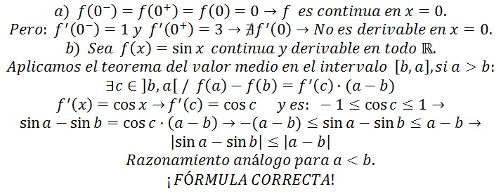 < = 2*|a-b|/2 * |cos((a+b)/2)| = simplificamos = |a-b|*|cos((a+b)/2)| <= por propiedad (****) <= |a-b|*1 = |a-b|.