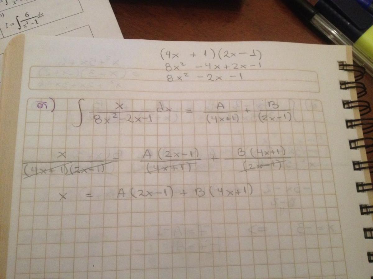 I1 = (1/6)*Integral (1/(4x+1))*dx (puedes resolverla con la sustitución: t = 4x+1).