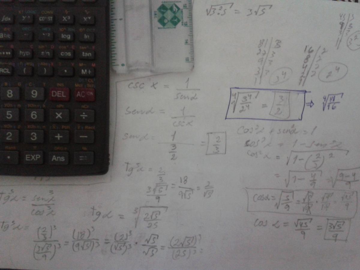 BS unicoos, ayudenme en este ejercicio no encuentro como llegar a la solucion del ejercicio que es: tg^3x= 8raiz5/25.![]()