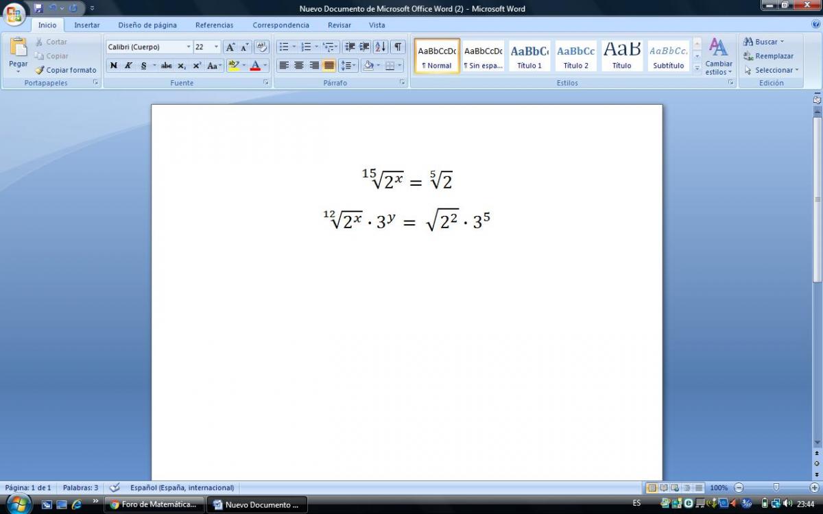 En el primer ejercicio tienes una raíz quinta (indicamos (5V)) y una raíz con índice 15 (indicamos (15V)), y observa que el mínimo común múltiplo entre 5 y 15 es 15, por lo tanto elevamos ambos miembros a la 15 y queda: