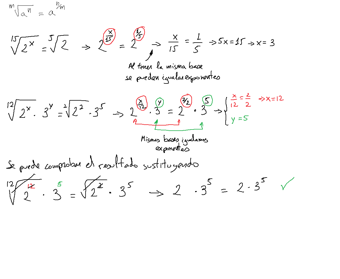 12y = 60 (comparando las potencias con base 3), de donde despejamos y queda: y = 60/12 = 5.
