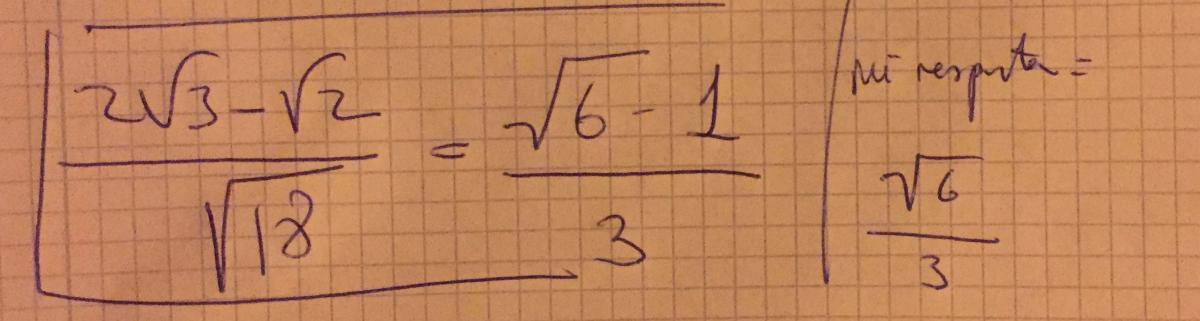 ( 2V(3) - V(2) ) / V(18) = ( 2V(3) - V(2) ) / ( 3*V(2) ) = multiplicamos al numerador y al denominador por V(2):