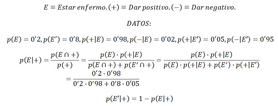 - La probabilidad de dar positivo si se está enfermo es 0,98.