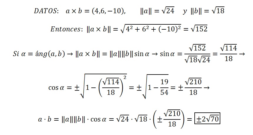 →Módulo de b:    |b|= raíz cuadrada de 18
