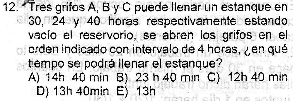 Llamemos V al volumen del tanque: Observa que los caudales (volumen de agua por hora que aporta cada grifo) son:
