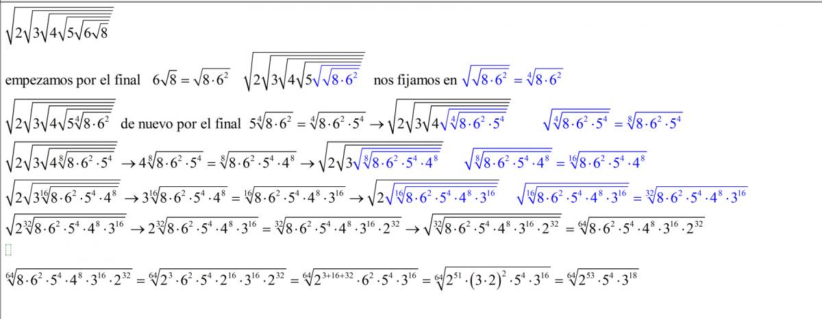 Este ejercicio está en mi libro de matemáticas y no sé cómo hacerlo. El enunciado es el siguiente: ''escribe bajo un sólo radical y simplifica''.