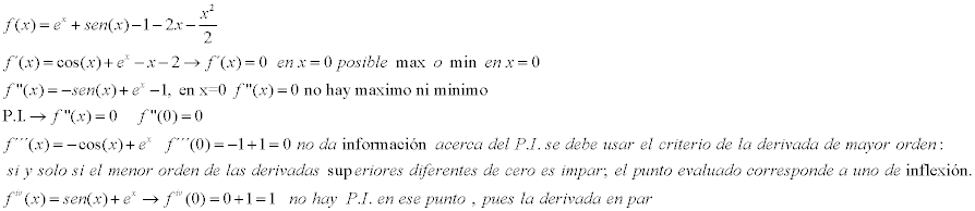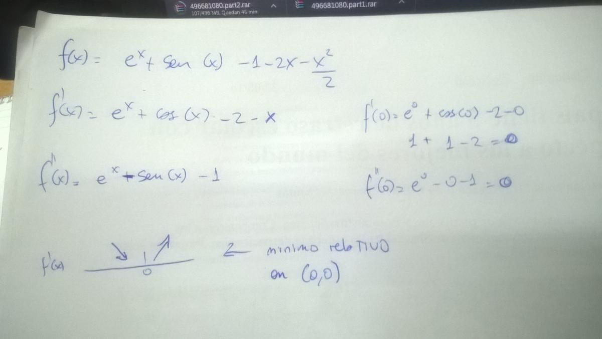 solo tenes que obtener la derivada en X=0 de la funcion, ver como se comporta la funcion en el entorno e ese punto (si te da con signo positivo a la izquierda y negativo a la derecha entonces es maximo, caso inverso es minimo ), y hacer lo mismo con la derivada segunda en ese punto. si no te podes guiar con esto lo resuelvo si asi lo necesitas ;)