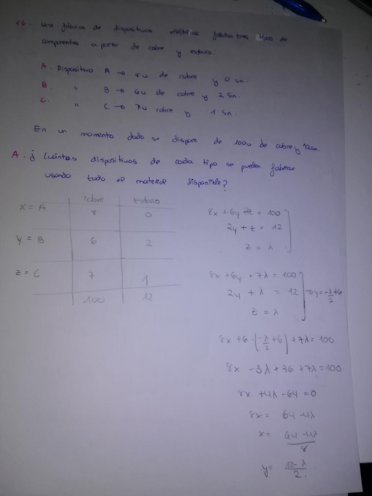 1. ¿Cu´antas dispositivos de cada tipo se pueden fabricar usando todo el material disponible?