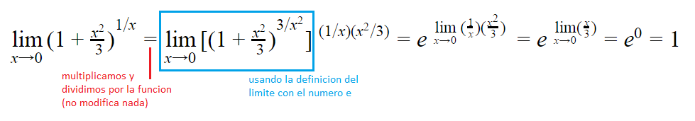 Unicoos, necesito calcular el lim x-> 0 de (1+(x2/3))(1/x), utilizando la fórmula de lim x->0 de (1+x)(1/x)=e, si bien se como realizar el procedimiento, tengo problema sobre como modificar mi funcion de forma que sea como la de la guia, mas precisamente el x2/3. No se si tengo que hacer alguna modificacion en la funcion, o no.