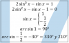 Si, dedusco que se pudieron a ver tomado tambien el valor cuando arcsen1=90º y 270º y en el caso de arcsen-1/2=-30º entonces al observar en el grafico se toman los grados en el eje -Y porque arcsen-1/2 me dio negativo que seria 210º y 330º. Pero en mi caso la opcion seria la d) que es en donde se encuentran 3 de los grados conseguidos en la ecuacion... Mi conclucion es correcta?