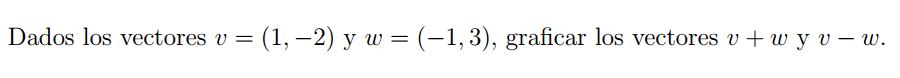 v + w = < 1 , - 2 > + < - 1 , 3 > = < 0 , 1 >, con origen en el punto (0,0) y extremo en el punto (0,1);