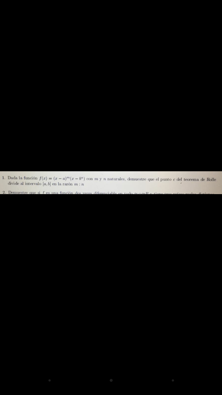 (c-a)^(m-1) * (c-b)^(n-1) * ( m(c-b) + n(c-a) ) = 0, luego como c pertenece al intervalo abierto (a,b) tenemos que los dos primeros factores no son nulos, los pasamos dividiendo y queda: