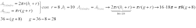 A2 = pi*R^2 + pi*R*G = reemplazamos datos: = pi*8^2 + pi*8*G = 64pi + 8pi*G.