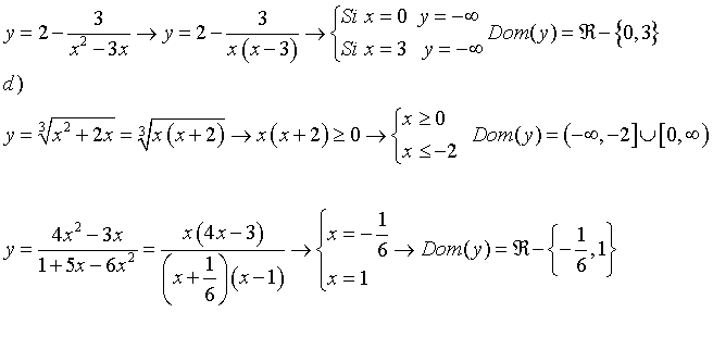 Luego, a partir de las dos ecuaciones negadas remarcadas, tienes que el dominio de la función queda expresado: