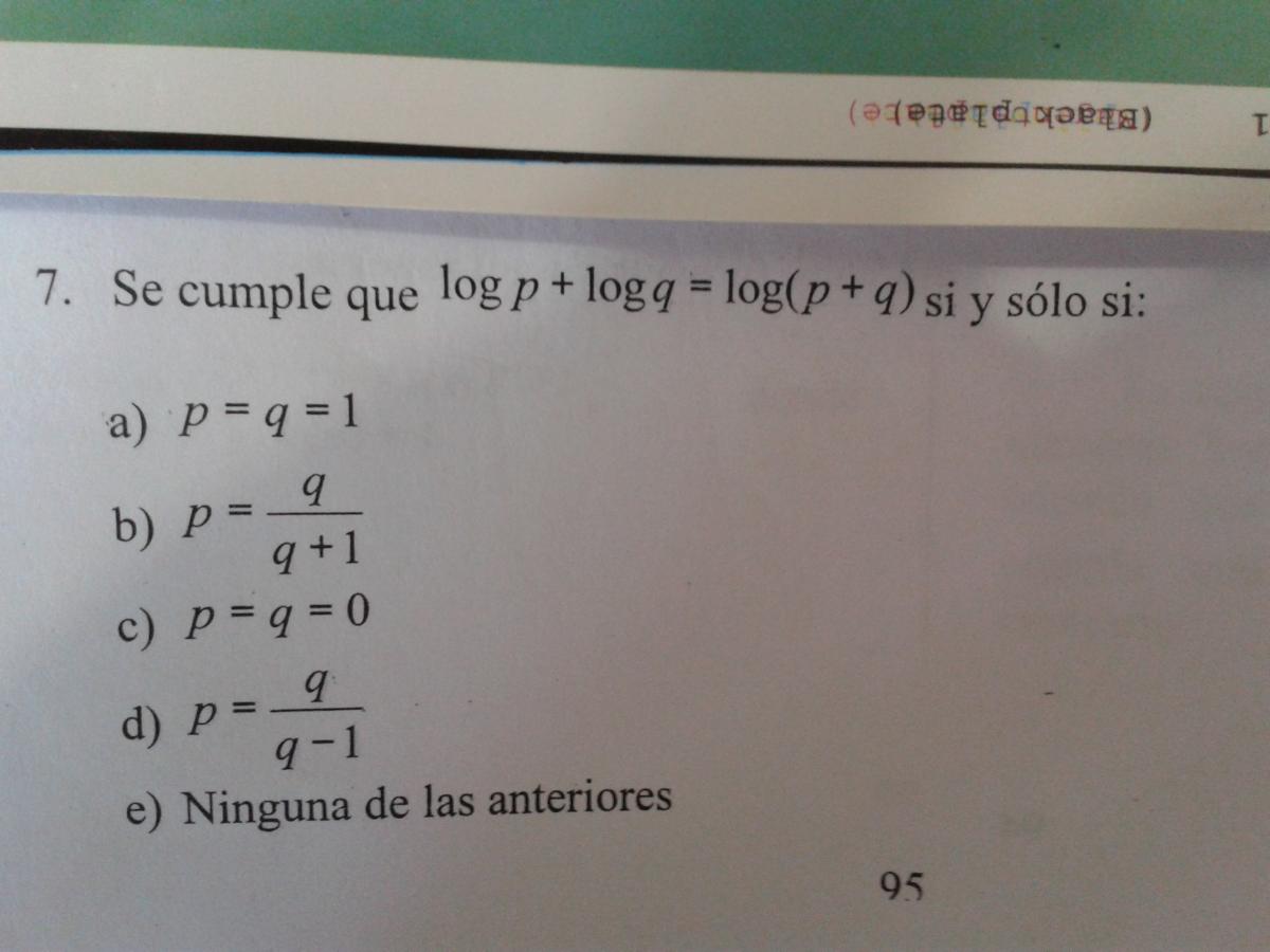 Observa que q debe ser distinto de uno, y que a partir del enunciado p y q deben ser estrictamente mayores que cero.