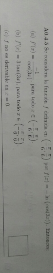 c) es Falso, ya que f ' (0) = 3*tan(0) = 0.