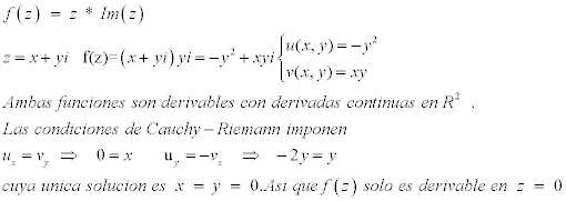 y este otro ejercicio : Determinar el dominio de existencia de f'(z) y encontrar su expresión: f(z) = z * Im(z)