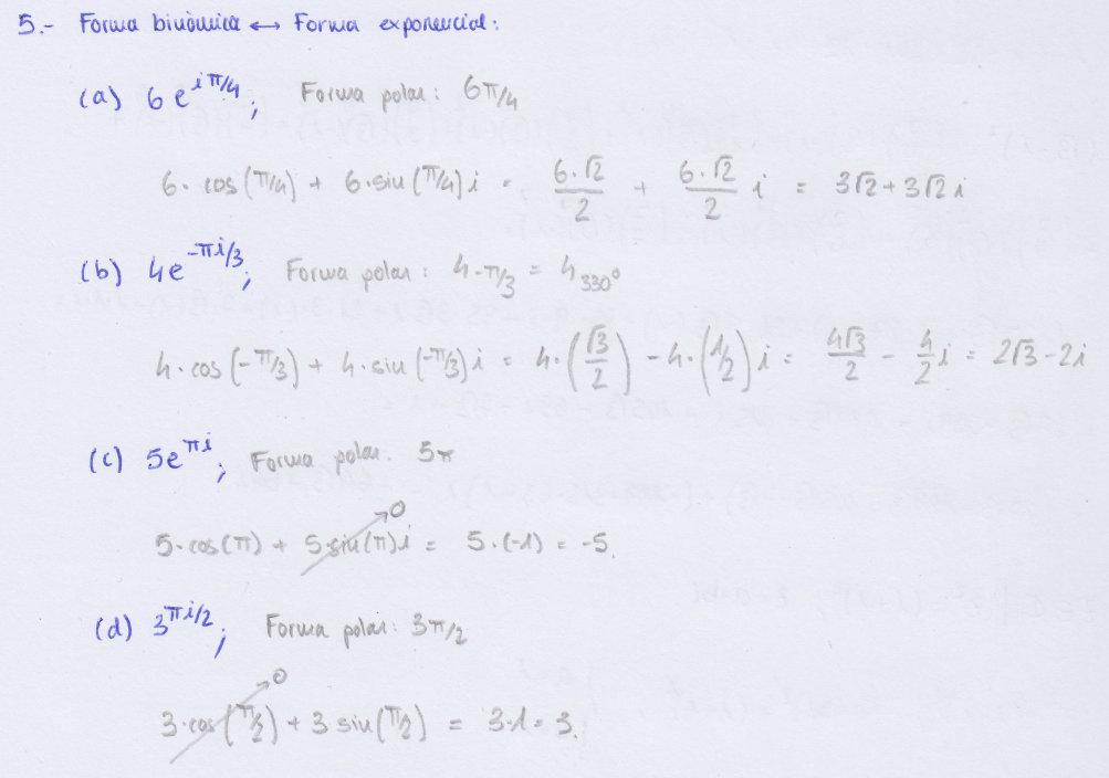 En el ejercicio 4 me piden que transforme un numero complejo de forma binómica a exponencial.