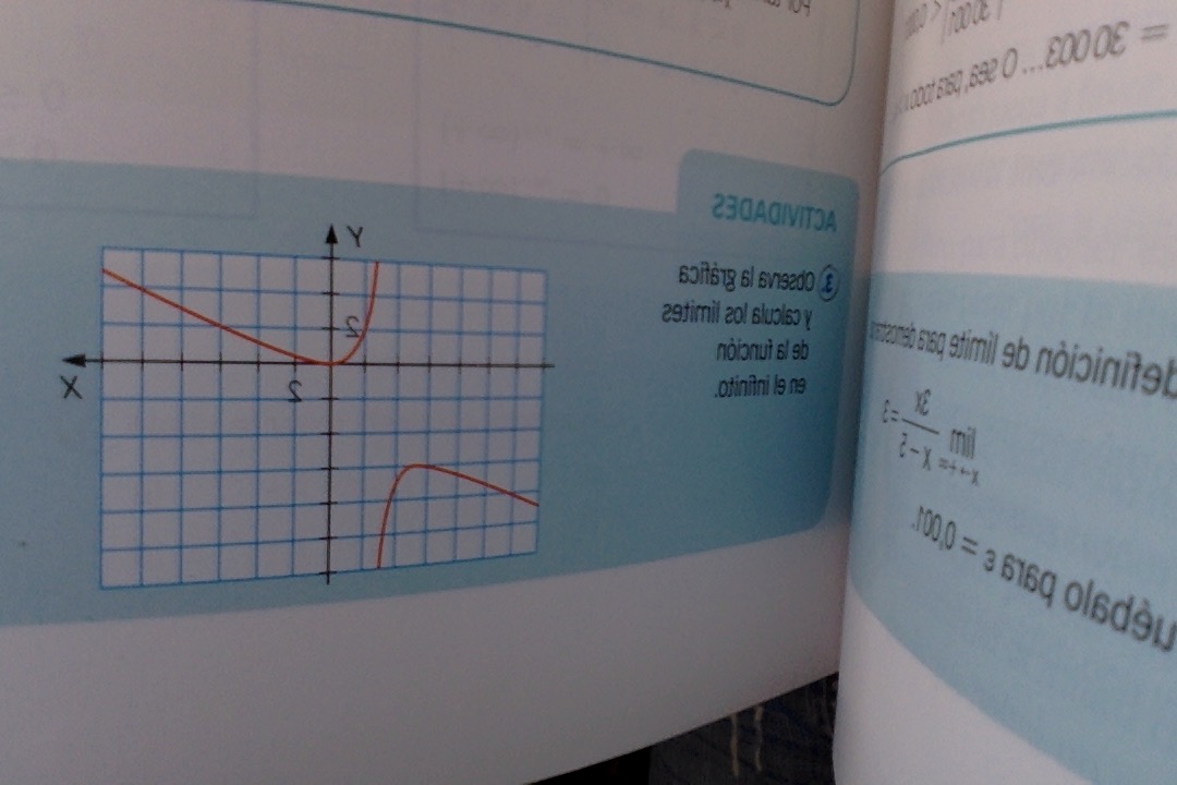 Observa que el tramo que está sobre el semieje x negativo, del otro lado del origen de coordenadas con respecto a la asíntota vertical, el tramo de gráfica es cóncavo hacia abajo y, si lo extiendes hacia la izquierda, la curva se extiende hacia valores con valor absoluto más grandes en el eje x negativo, y hacia valores con valor absoluto más grandes en el eje y negativo, por lo que el límite para x tendiendo a -infinito de la función es -infinito.
