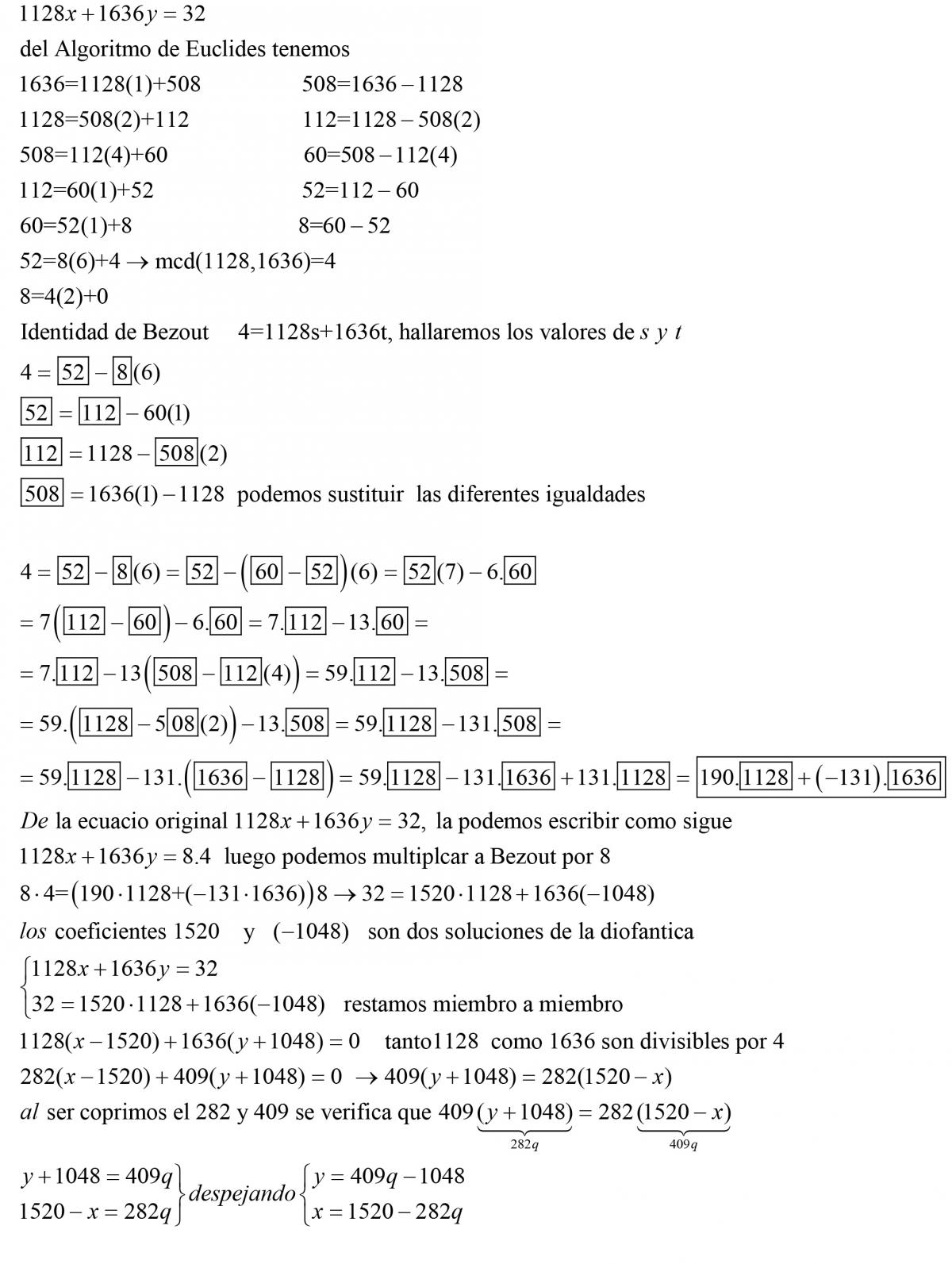 el dcm entre 1128 y 1636 me dio 4, y como 4 divide a 32 entonces tiene solucion, pero al hacer la ecuacion me queda muy larga