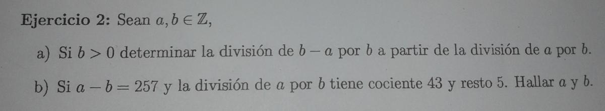 (b - a) = cb + r (***), con 0 <= r < b, con el cociente (c) y el resto (r) a determinar.