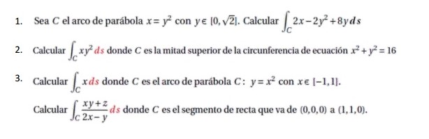 1) Elegimos a y como parámetro, y la función vectorial de posición para los puntos de la trayectoria queda: r(y) = <y^2, y>, con 0<=y<=V(2), luego: