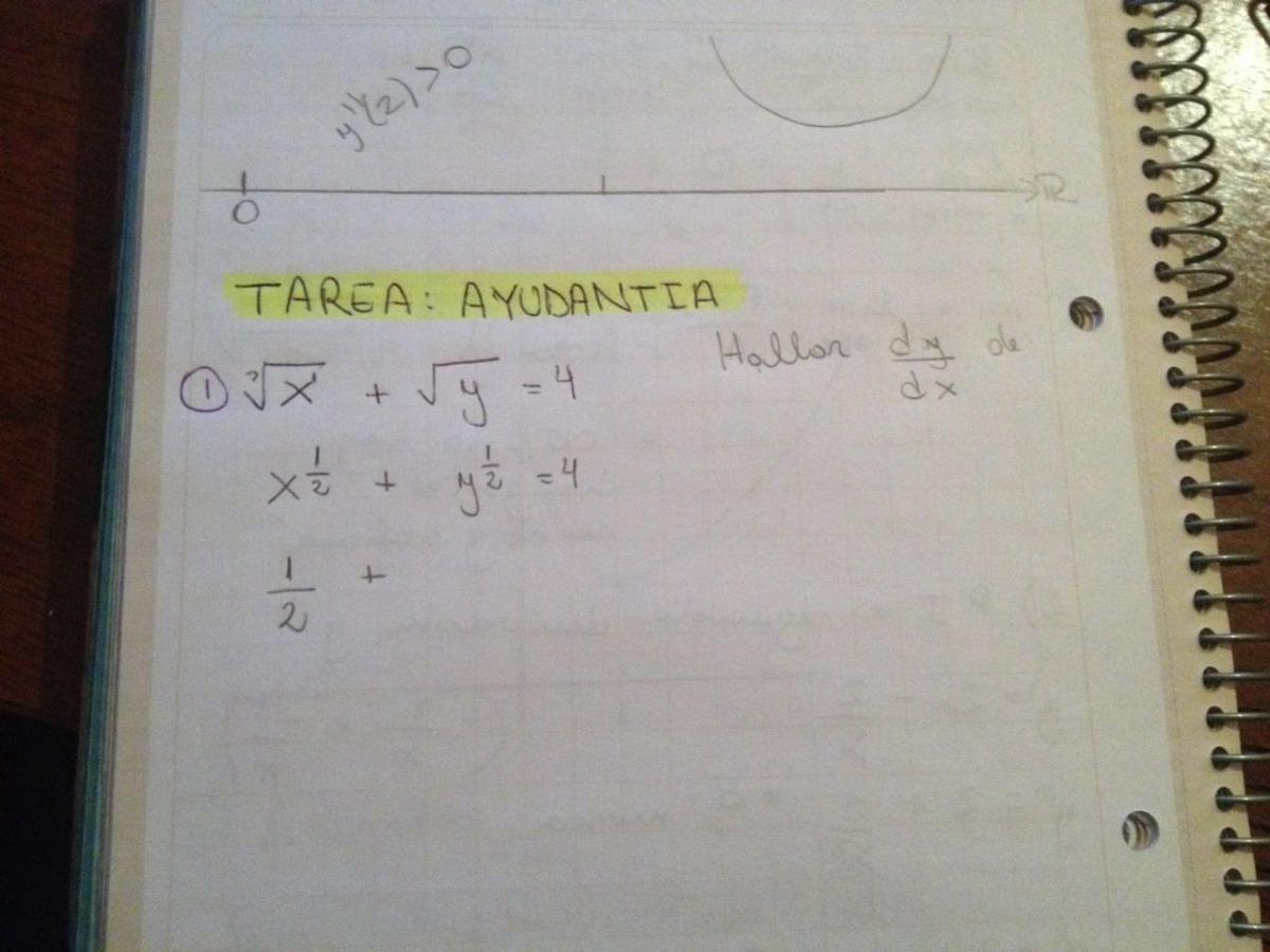 x^(-1/2) + y^(-1/2) * y ' = 0, luego haces pasaje de término y queda: